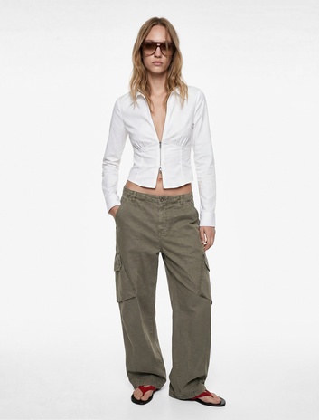 Uzun Kollu Fermuarlı Slim Fit Crop Gömlek Sepete Ekle