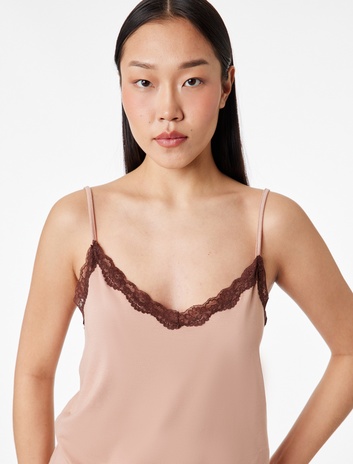 Viskon Kumaş Dantel Detaylı Askılı Pijama Üstü