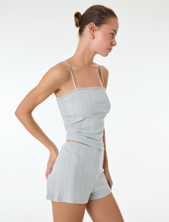 Pamuklu Dokulu Slim Fit Şort Pijama Altı