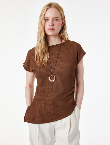 Slim Fit Drape Detaylı Bisiklet Yaka Dokulu Kolsuz Bluz Sepete Ekle