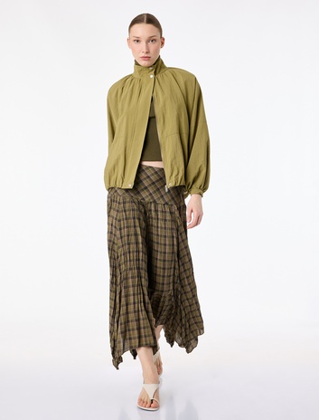 Kemer Detaylı Asimetrik Kesim Ekoseli Midi Etek