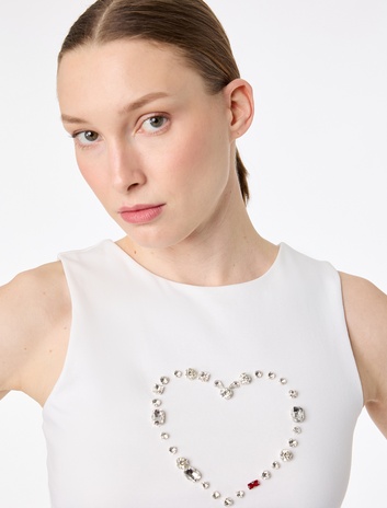 Pamuklu Slim Fit Kolsuz Bisiklet Yaka Taş Detaylı Kalpli Bluz