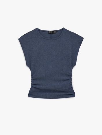Bürümcük Kumaş Slim Fit Drapeli Kısa Kollu Bisiklet Yaka Tişört Sepete Ekle