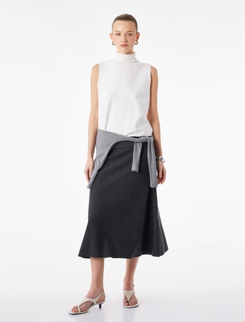 Viskon Kumaş Kemerli Midi Kloş Etek