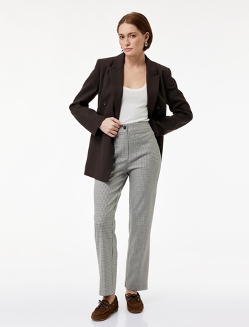 Viskon Karışımlı Regular Fit Ekoseli Cigarette Pantolon Sepete Ekle