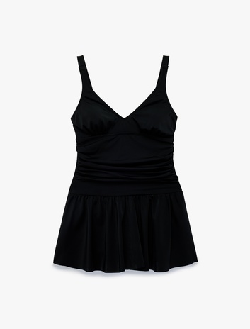 Drapeli V Yaka Askılı Toparlayıcı Etekli Mayo Sepete Ekle