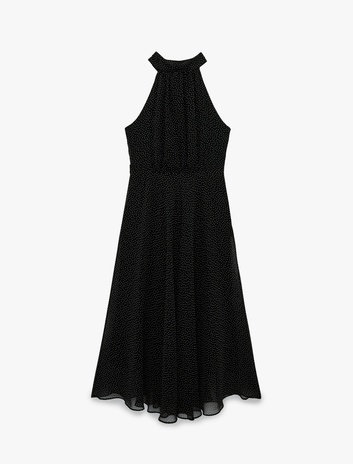 Midi Boy Puantiyeli Halter Yaka Şifon Elbise Sepete Ekle