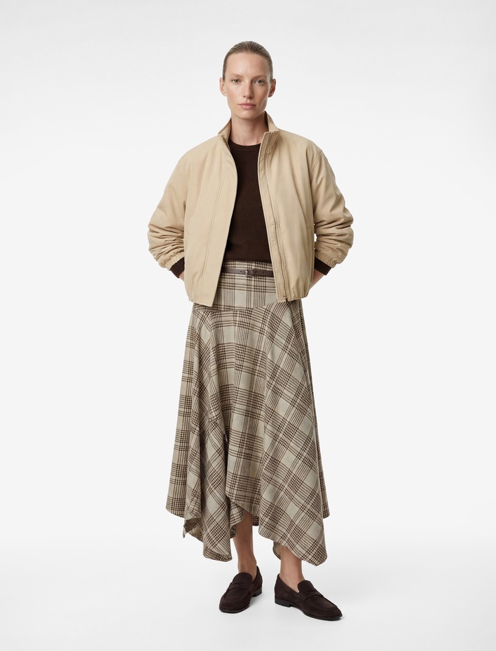 Kemer Detaylı Asimetrik Kesim Ekoseli Midi Etek Sepete Ekle