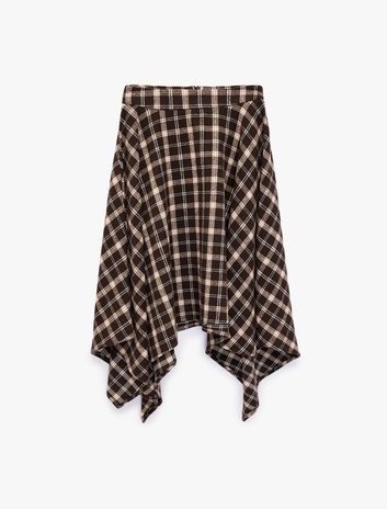 Asimetrik Kesim Ekoseli Midi Etek Sepete Ekle