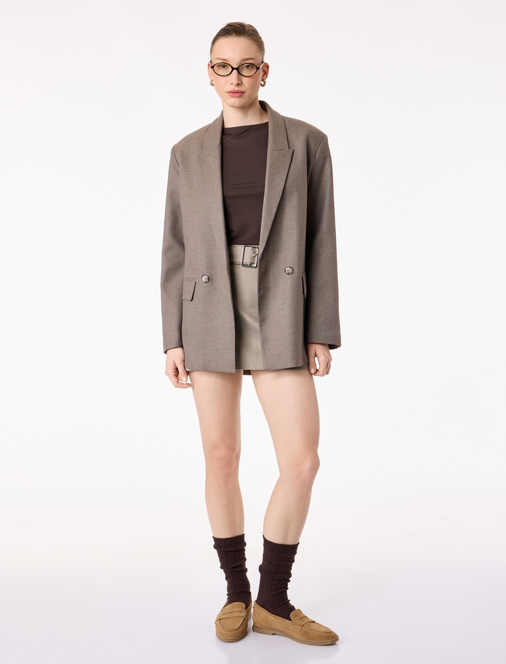 Geniş Yaka Düğmeli Cep Detaylı Blazer Ceket Sepete Ekle