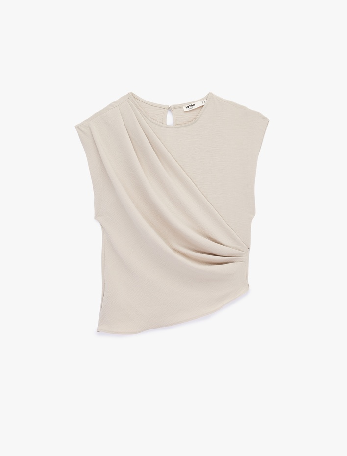 Asimetrik Kesim Kolsuz Bisiklet Yaka Drapeli Bluz