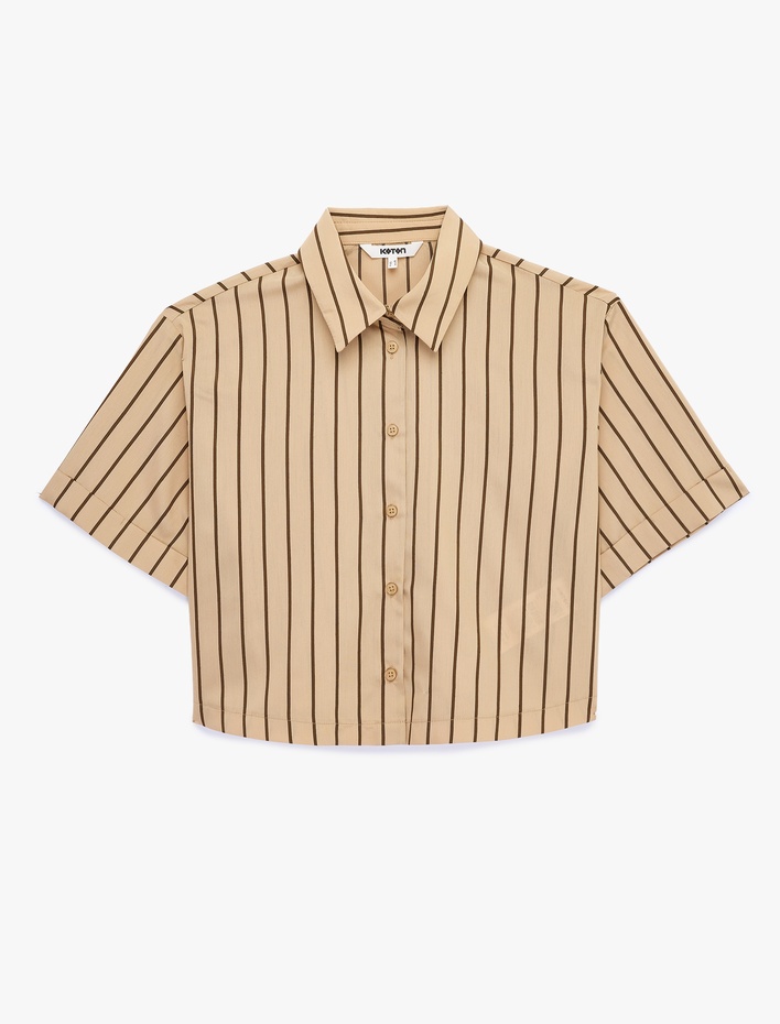 Salda Kumaş Regular Fit Kısa Kollu Çizgili Crop Gömlek