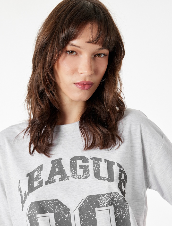 Pamuklu Kısa Kollu Bisiklet Yaka Baskılı Tişört Sepete Ekle