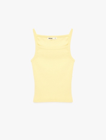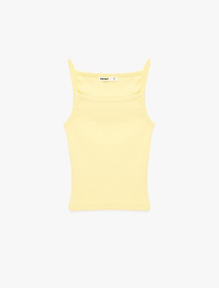 Slim Fit Ribanalı Kolsuz Kare Yaka Bluz
