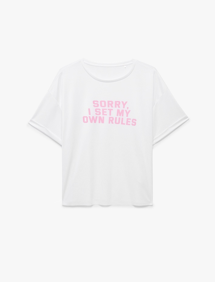 Oversize Yarım Kollu Bisiklet Yaka Baskılı Spor Tişört