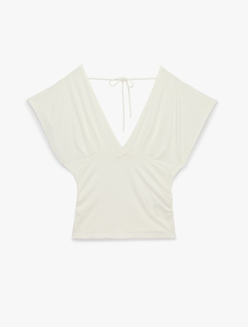 Slim Fit Kısa Kollu Bağlama Detaylı V Yaka Bluz