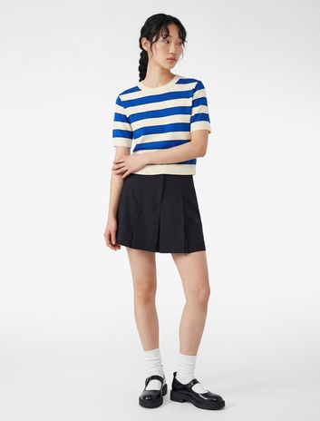 Kısa Kollu Çizgili Bisiklet Yaka Triko Kazak Sepete Ekle