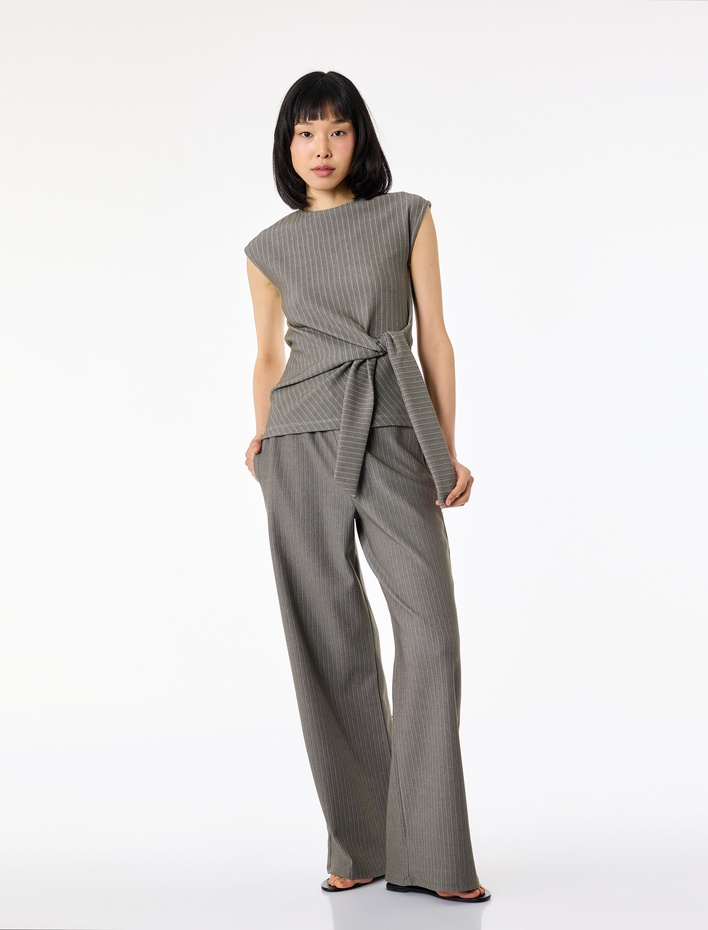 Bağlama Detaylı Çizgili Kolsuz Bluz