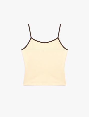Pamuklu Renk Kontrastlı Slim Fit U Yaka Askılı Bluz