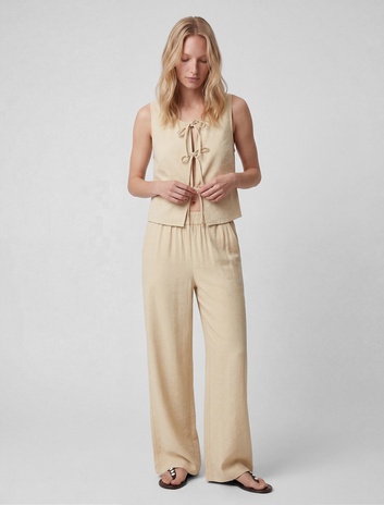 Beli Bağlamalı Regular Fit Düz Paça Viskon Karışımlı Pantolon Sepete Ekle