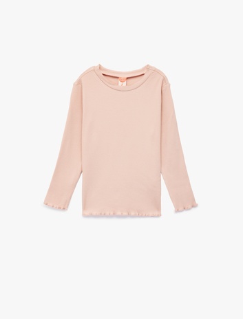 Bisiklet Yaka Fırfır Detaylı Pamuklu Basic Uzun Kollu Tişört Sepete Ekle