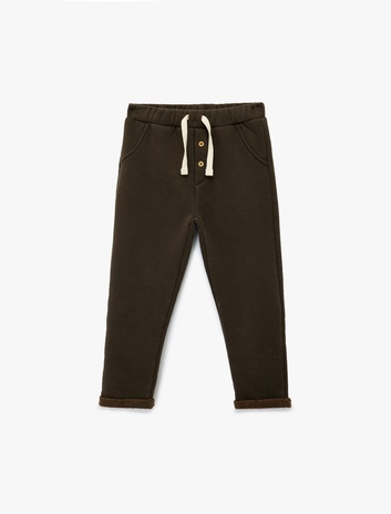 Erkek Bebek Düğme Detaylı Katlamalı Paça Beli Bağcıklı Eşofman Altı