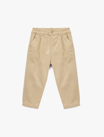 Erkek Bebek Beli Lastikli Düğmeli Pamuklu Havuç Kesim Pantolon