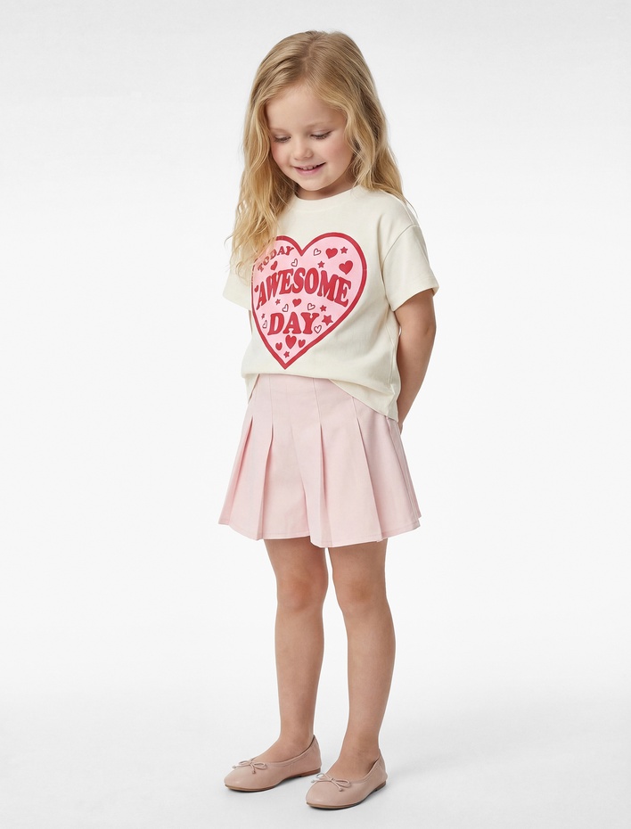 Kız Bebek Pamuklu Kısa Kollu Bisiklet Yaka Kalpli Baskılı Tişört