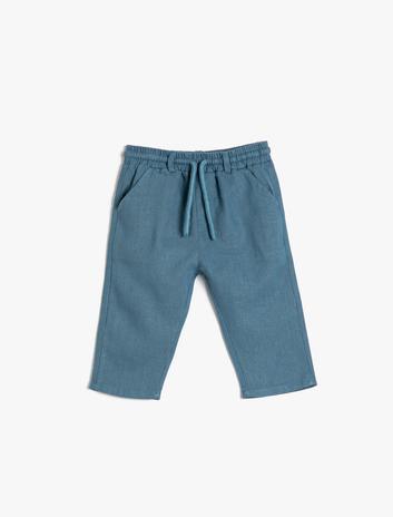 Erkek Bebek Keten Pantolon Beli Bağlamalı Cepli Rahat Kesim