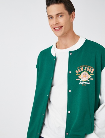 Kolej Ceket Bomber Yaka İşleme Detaylı Çıtçıt Düğmeli Cepli