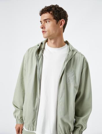 Kot Ceket Kolej İşlemeli Kapşonlu Fermuarlı Cepli Rahat Kesim