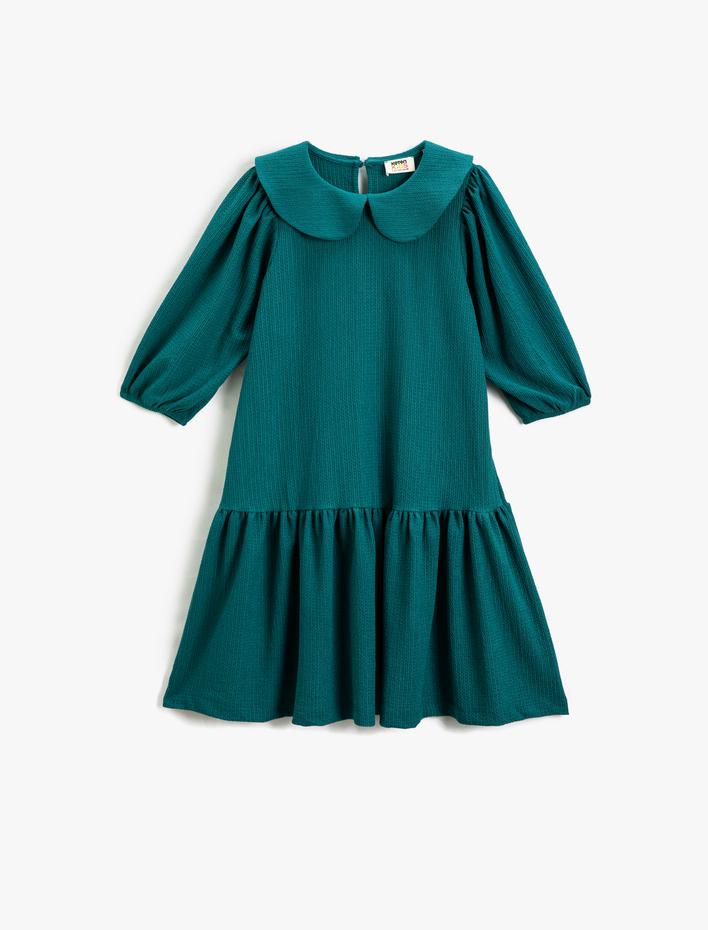 Elbise Geniş Bebe Yaka Balon Kollu Katlı Fırfırlı Sepete Ekle