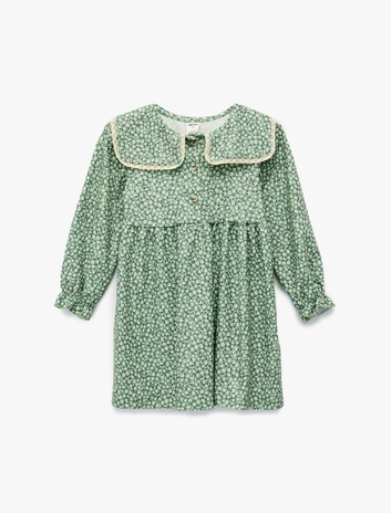 Bebe Yaka Uzun Kollu Çiçekli Elbise Sepete Ekle