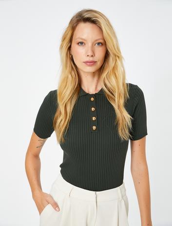 Triko Kazak Polo Yaka Düğmeli Kısa Kollu