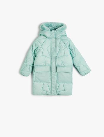 Kız Çocuk Oversize Şişme Mont Suni Kürk Detaylı Kapşonlu Kapaklı Cepli