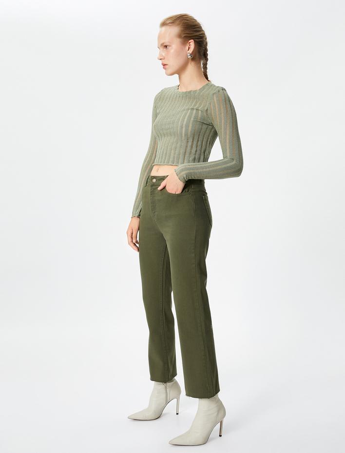 Crop Pantolon Nervürlü Yüksek Bel