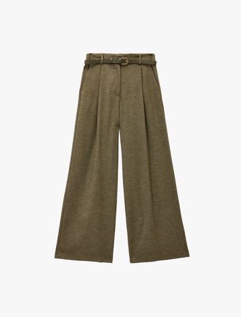 Loose Fit Cepli Pileli Kemerli Palazzo Kumaş Pantolon