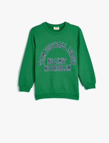 Erkek Çocuk Uzun Kollu Bisiklet Yaka Slogan Baskılı Şardonlu Sweatshirt