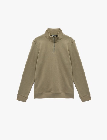 Uzun Kollu Pamuk Karışımlı Şardonlu Basic Yarım Fermuarlı Sweatshirt