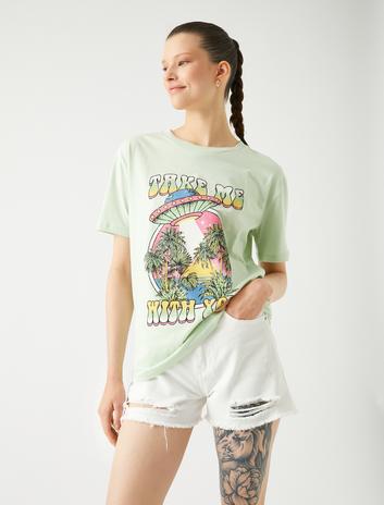 Baskılı Tişört Bisiklet Yaka Kısa Kollu Pamuklu