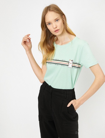 Bisiklet Yaka Kısa Kollu Baskılı Tişört