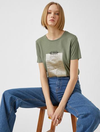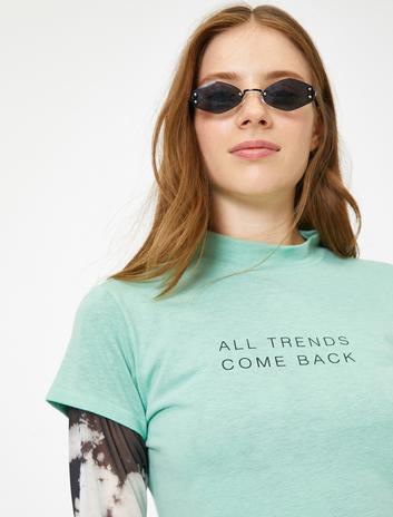 Bisiklet Yaka Kısa Kollu Yazılı Baskılı Tişört