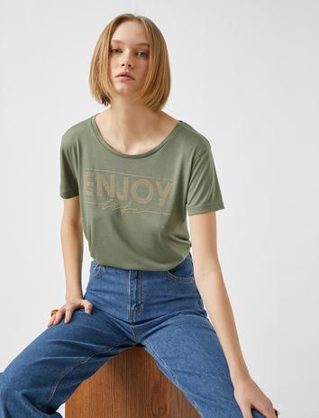 Slogan Baskılı Kısa Kollu Tişört Pamuklu Sepete Ekle