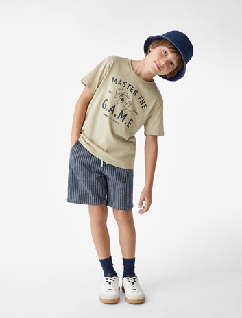 Erkek Çocuk Pamuklu Baskılı Bisiklet Yaka Kısa Kollu Çizgili Tişört