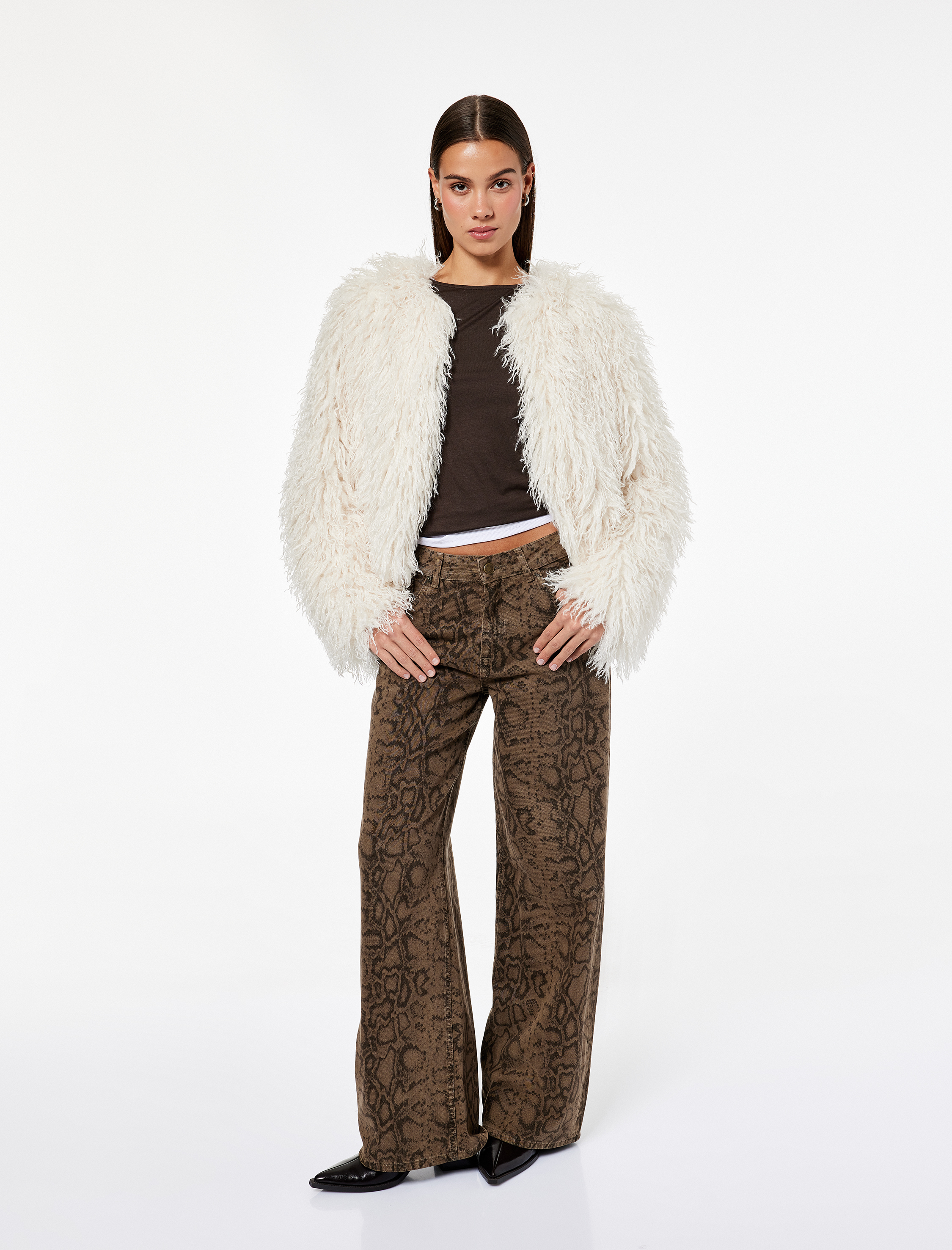 Yılan Desenli Düğmeli Normal Bel Geniş Paça Pantolon - Wide Leg Jeans
