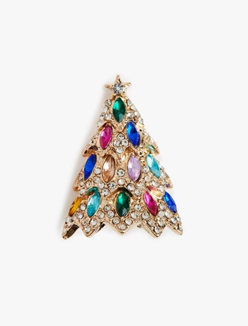 Yılbaşı Ağacı Temalı Taş Detaylı Broş Sepete Ekle