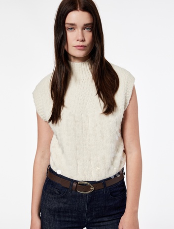 Metal Aksesuar Detaylı V Yaka Triko Yelek