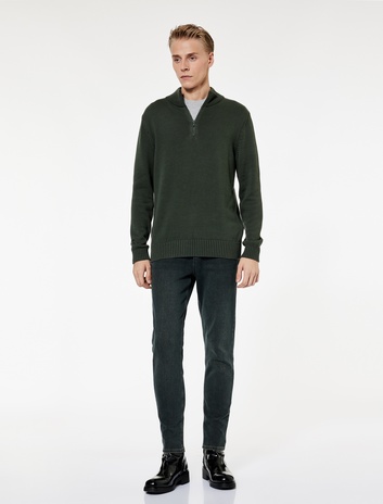 Pamuklu Uzun Kollu Yarım Fermuarlı Triko Kazak