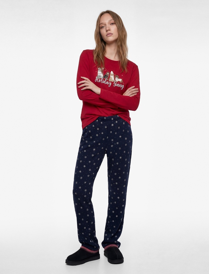 Yılbaşı Baskılı Pijama Takımı Pamuklu Sepete Ekle