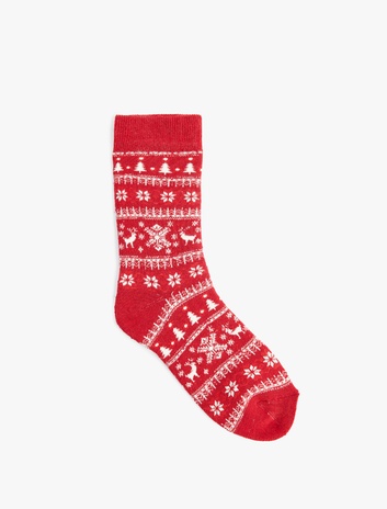 Pamuklu Yılbaşı Temalı Desenli Havlu Soket Çorap Sepete Ekle